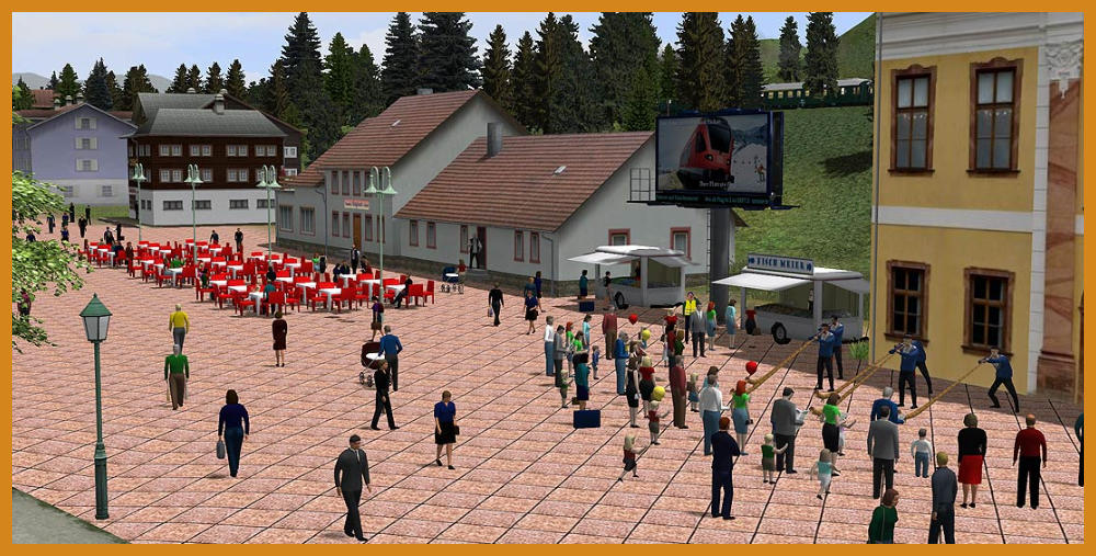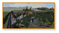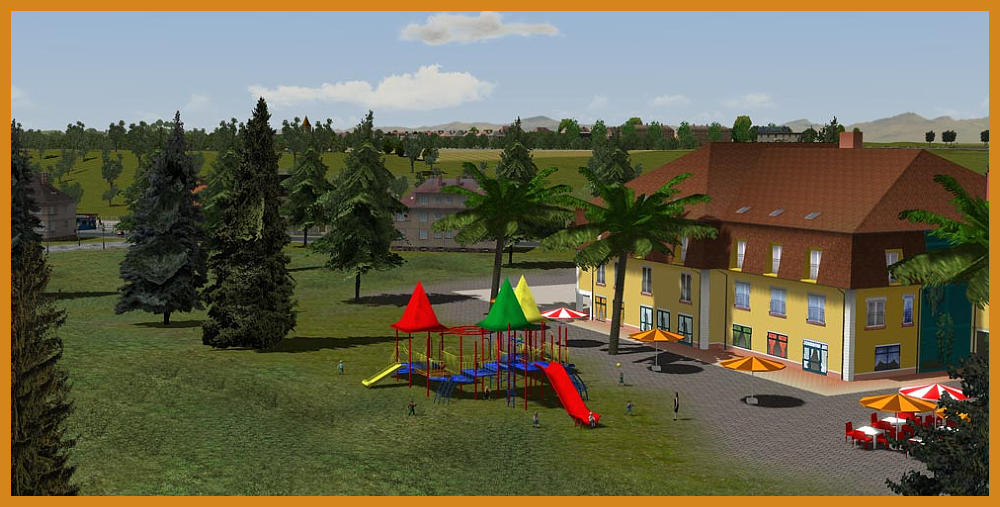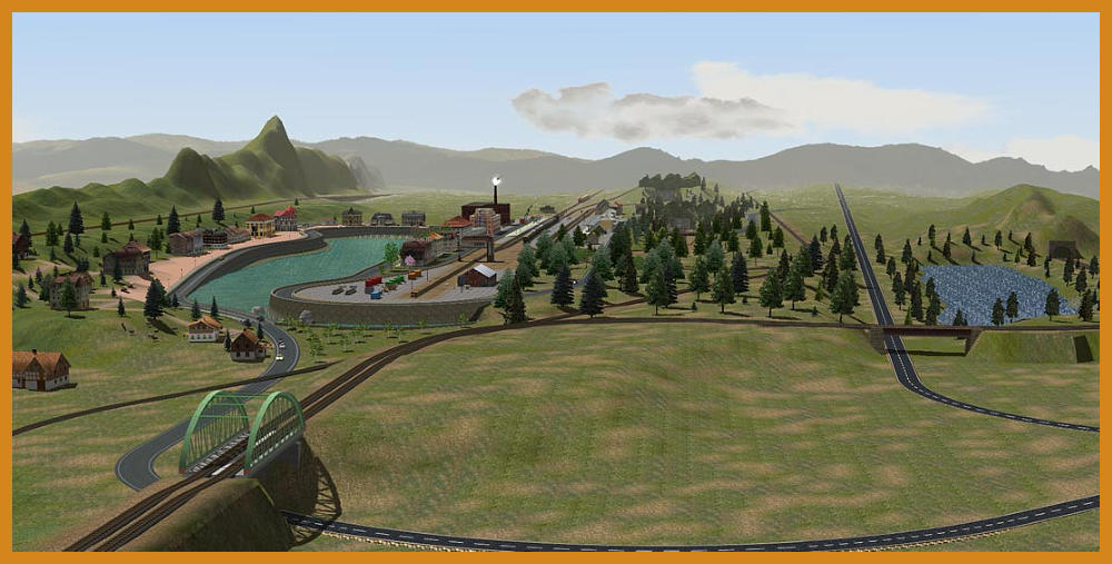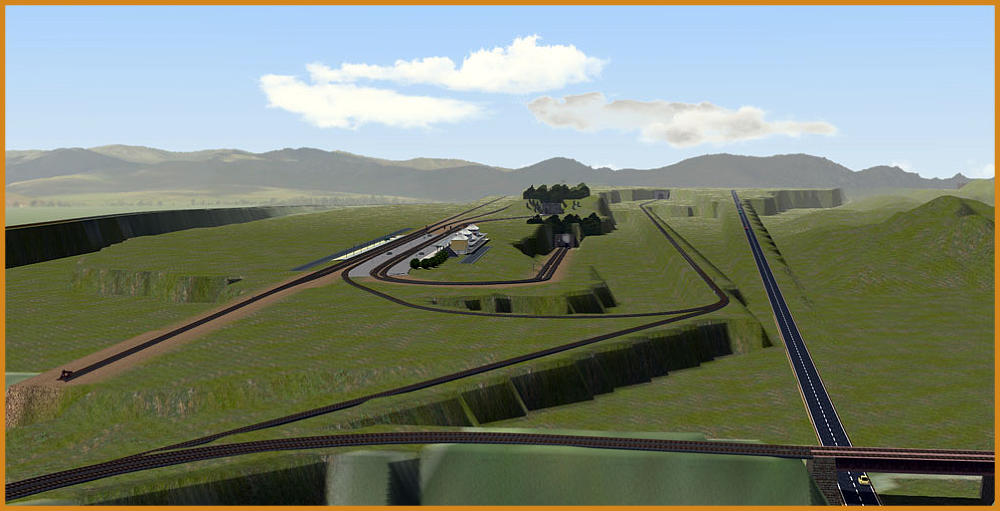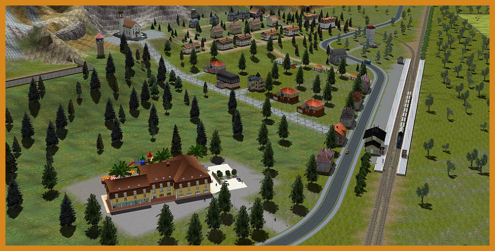 Diese Anlage ist im Aufbau. Bis jetzt sind 3 kleine Städte fast fertig.Die 4. Stadt ist gerade in Arbeit.Im Bau seit Juli 2011. Aktueller Stand der Fotos 30.05.2014.Diese Anlage ist für Testzwecke entstanden. Ein warscheinlich nie fertiges Nebenprodukt und zum weiteren Ausbau geeignet.Es ist eine Kameraführung enthalten ( Fahrt mit dem Doppelstockbus nach Essen-Kettwich und zurück ).Bei Beendung der Kameraführung wird wieder in die Ansicht “ Schaltpult “ gewechselt.Dafür bitte das Startsignal ganz Links in der Ansicht Schaltpult mit Shift und Mausklick starten. Die anderen Startsignale können für weitere Kameraführungenverwendet werden.Anlagendaten:Format : EEP V.8 ExpertBreite : 8 kmLänge : 1 kmHöhe : -32,48 m bis 143,75 mRasterpunkte pro km : 176 Knoten / km