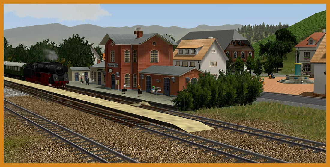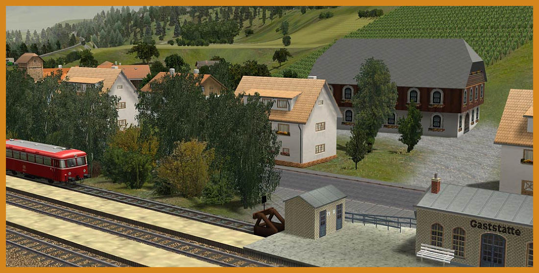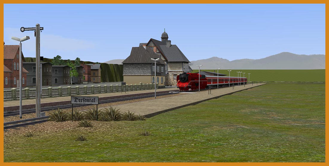 Aktuelle Bilder der Anlage Dresental.Baubeginn : 01.04.2012Aktueller Stand der Fotos 30.09.2012.Anlagendaten:Format : EEP 8.2 Expert, Plugin 2 ( Ab EEP 8 lauffähig )Breite : 5,00 kmLänge : 1,00 kmHöhe : -20,41 m bis 51,59 m Rasterpunkte pro km : 223 Knoten / kmAutomatische Kameraführung ca. 80 MinutenDie Anlage entspricht keinem Vorbild und ist aus reiner Fantasie entstanden. Das Thema Kohletransport steht im Vordergrund und soll den Transport von derZeche bis zum Güterbahnhof zur weiteren Verladung darstellen. Aber auch der kleine Kurort Dresental, der am Dresentaler See liegt, hat einiges zu bieten.Hier fühlen sich die Feriengäste in ihrem wohlverdienten Urlaub pudelwohl. Ein Rundflug mit dem Helikopter und Badespaß am See sorgen für spannende Erholung.Es befinden sich 4 Orte auf der Anlage.Bad Langensalza ist eine Kleinstadt mit Stadtpark und viel Waldgebiet im Westen. Das Dorf Wiesental befindet sich in der Mitte der Anlage und bekommt regelmäßig Lieferungen aus der Pferdezucht. Zudem schmückt ein kleiner Weinberg dasidyllische Dörfchen.Uhlstädt ist im Osten der Anlage zu finden. Hier verkehren regelmäßig Personenzüge.Die folgenden Bilder zeigen Bauabschnitte und weitere Impressionen. Viel Spaß beim anschauen.