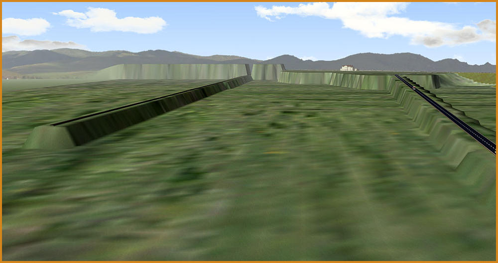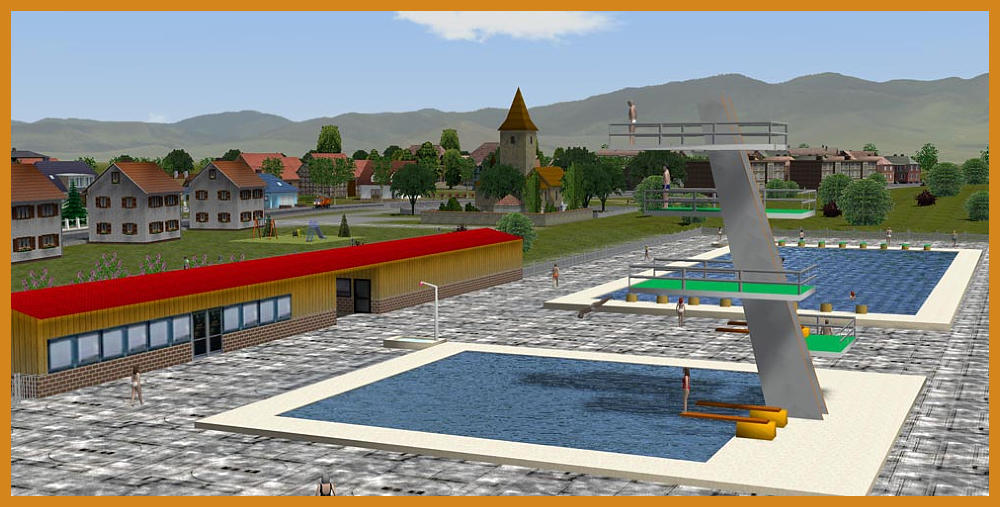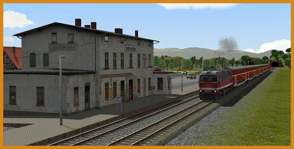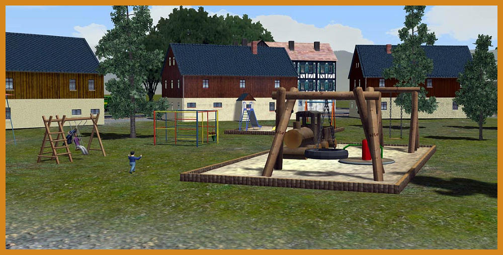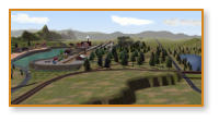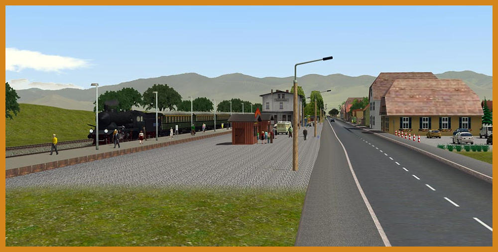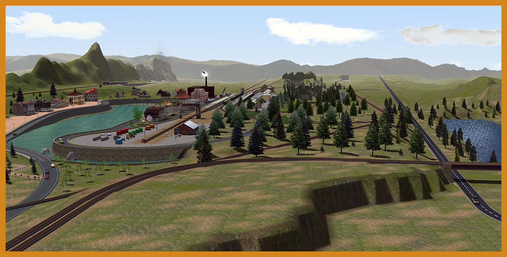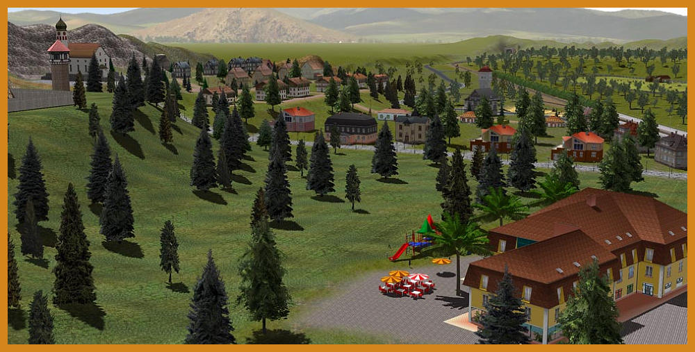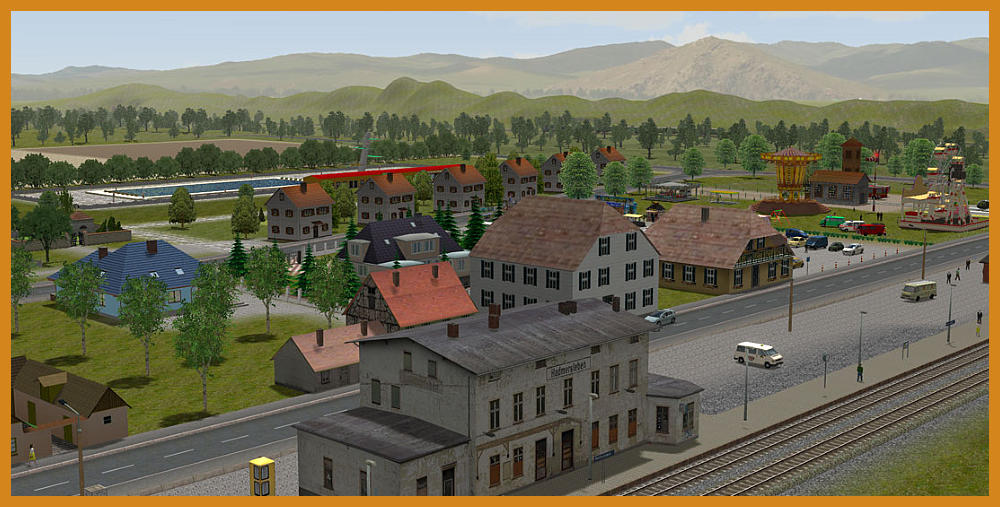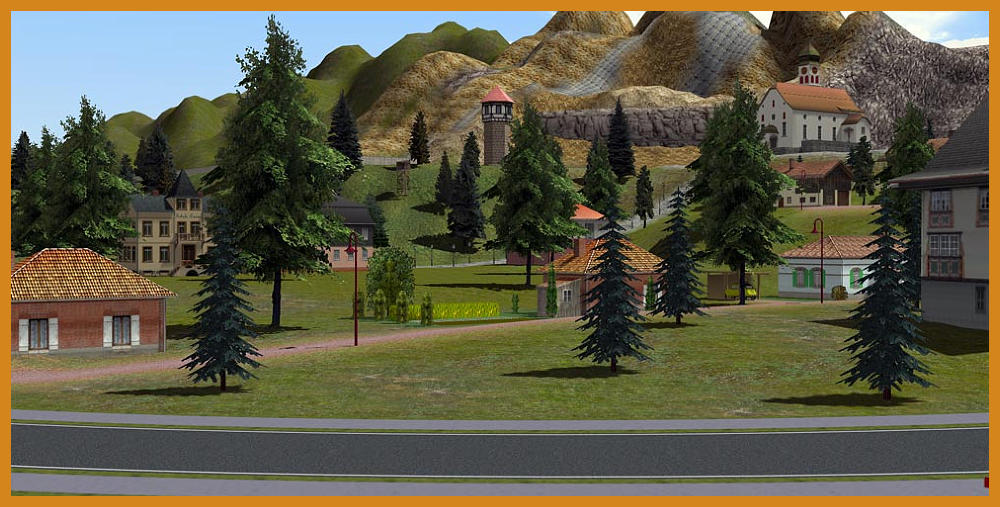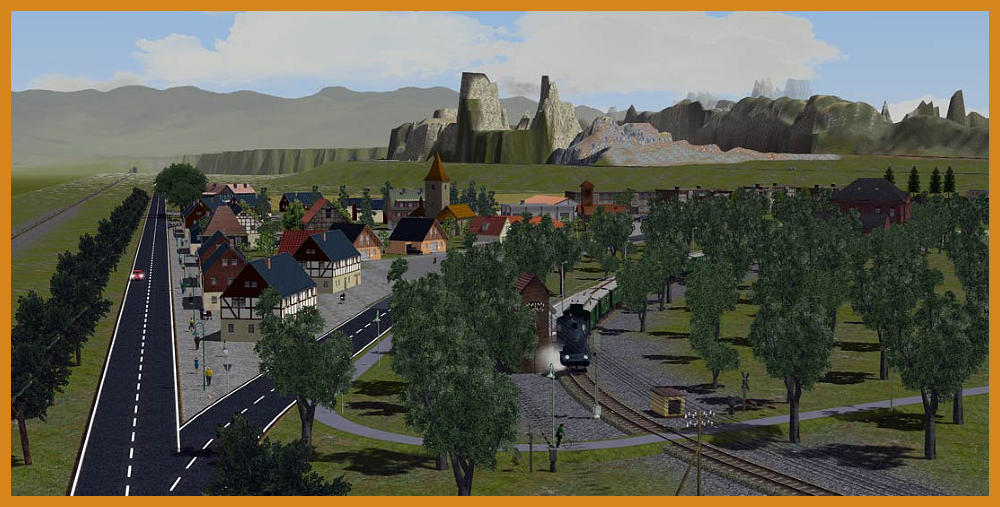 Diese Anlage ist im Aufbau. Bis jetzt sind 3 kleine Städte fast fertig.Die 4. Stadt ist gerade in Arbeit.Im Bau seit Juli 2011. Aktueller Stand der Fotos 30.05.2014.Diese Anlage ist für Testzwecke entstanden. Ein warscheinlich nie fertiges Nebenprodukt und zum weiteren Ausbau geeignet.Es ist eine Kameraführung enthalten ( Fahrt mit dem Doppelstockbus nach Essen-Kettwich und zurück ).Bei Beendung der Kameraführung wird wieder in die Ansicht “ Schaltpult “ gewechselt.Dafür bitte das Startsignal ganz Links in der Ansicht Schaltpult mit Shift und Mausklick starten. Die anderen Startsignale können für weitere Kameraführungenverwendet werden.Anlagendaten:Format : EEP V.8 ExpertBreite : 8 kmLänge : 1 kmHöhe : -32,48 m bis 143,75 mRasterpunkte pro km : 176 Knoten / km